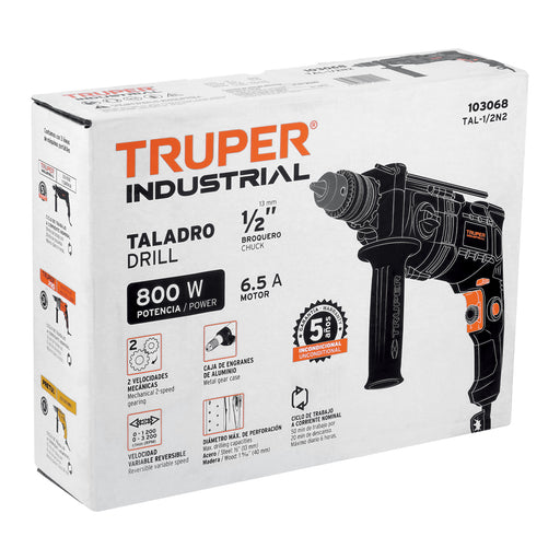 Taladro 1/2' 800 W dos velocidades, industrial, Truper Código: 103068