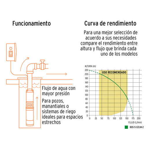 Bomba sumergible, tipo bala, 1/2 HP, a/limpia, 220V, Truper 102974 BOS-1/2LM-2