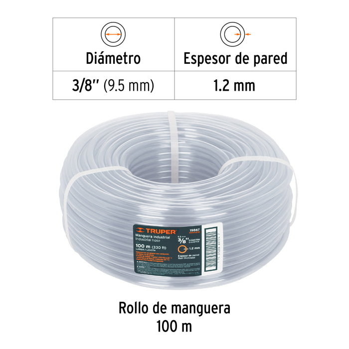 Metro de manguera 3/8' industrial en rollo de 100 m, Truper 19867 MAN-3/8I