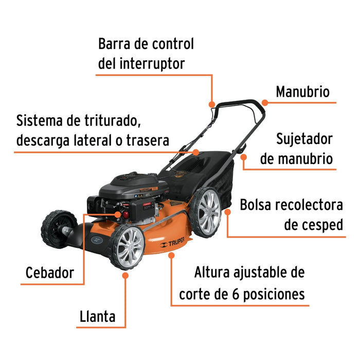 Podadora con motor a gasolina de 6 HP, 22' de corte, Truper 19968 P-622