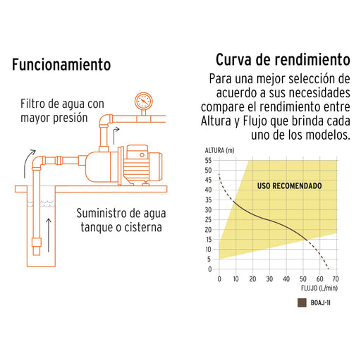 Bomba eléctrica tipo jet para agua, acero inoxidable, 1 HP 13559 BOAJ-1I