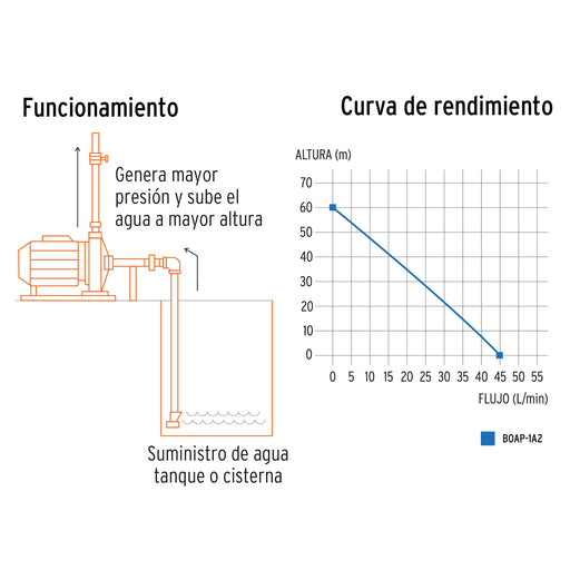 Bomba periférica 1 HP, altura máxima 60 m, Truper 12114 BOAP-1A2