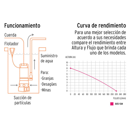 Bomba sumergible plástica, 1 HP para agua sucia, Truper 12603 BOS-1SP