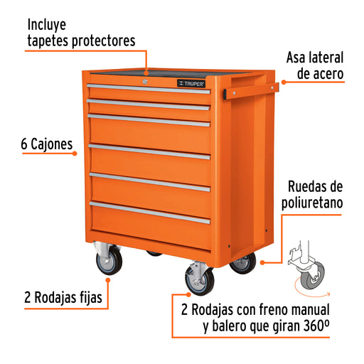Gabinete metálico móvil, 6 cajones, capacidad 130 kg, Truper 12067 GAMO-6130