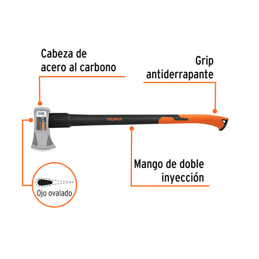 Hacha Michigan 4 lb, mango fibra de vidrio 34', Truper 11133 HM-4FX