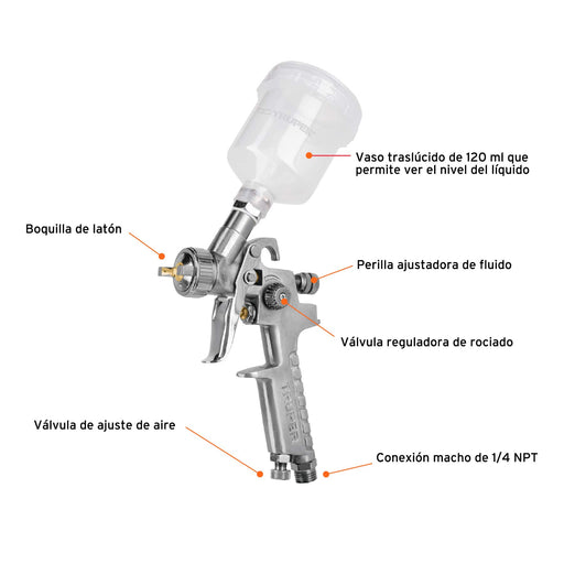 Pistola compacta p/retoque LVMP vaso alum, 0.5 mm, Truper 11098 PIPI-400