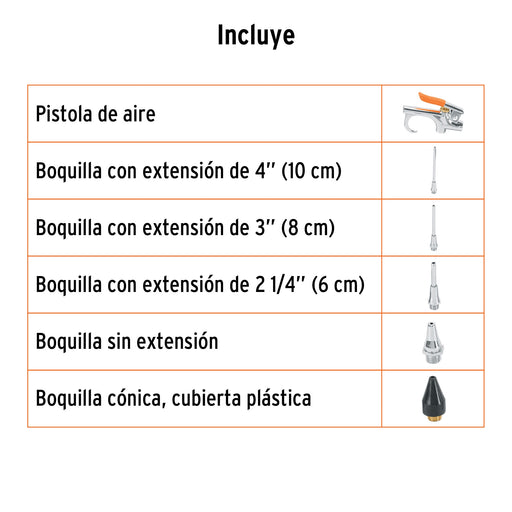 Juego de pistola y 5 boquillas para compresor de aire 19077
