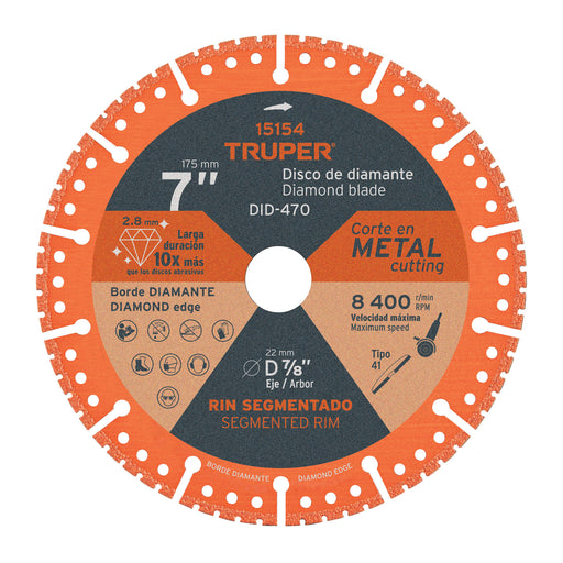 Disco de diamante de 7' x 1.6 mm para corte metal, Truper 15154 DID-470