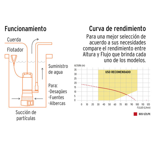Bomba sumergible metálica para agua limpia uso rudo 1/2 HP 15001 BOS-1/2LPX