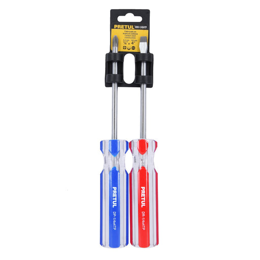 Dúo de desarmadores 1/4 x 4' mango de PVC, Pretul 20210 DUO-1/4X4TP