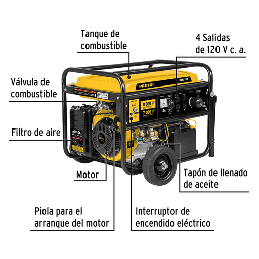 Generador portátil 8 kW motor a gasolina, Pretul 26036 GEN-70P