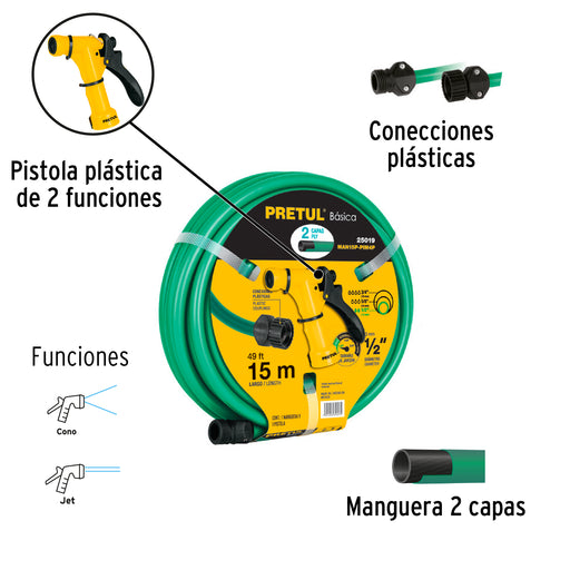 Combo manguera MAN-15X1/2P y pistola de riego PIM-4P, Pretul 25019 MAN15P-PIM4P