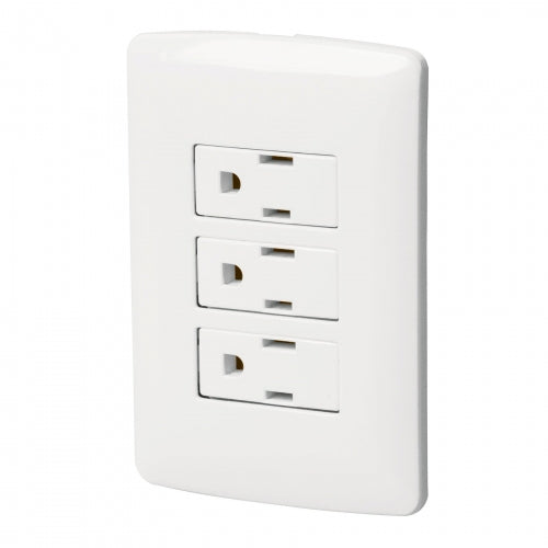 Placa armada 3 contactos aterrizados, blanco, línea Italiana 46458 PA-COTR-IB