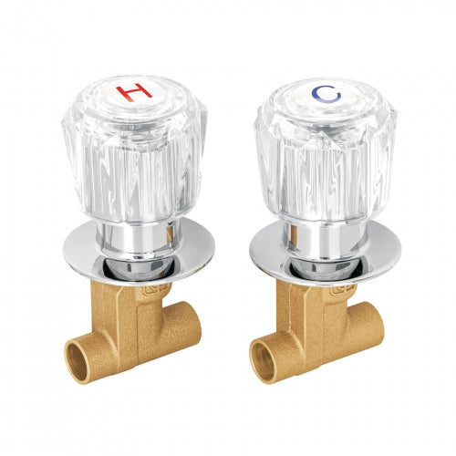 Juego llaves empotrar soldables, maneral acrílico, Foset 49250 E-652A