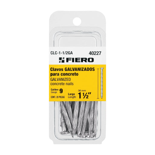 Blíster con 20 clavos galvanizados p/concreto 1-1/2', Fiero 40227 CLC-1-1/2GA