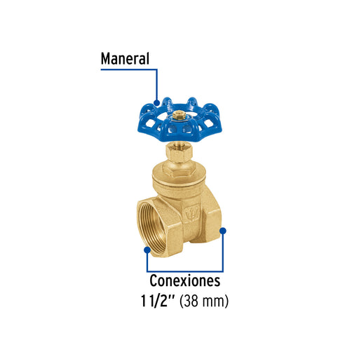 Válvula de compuerta de latón roscable de 1 1/2', Foset 49021 CORO-1-1/2