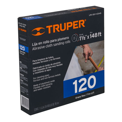 Rollo de 45 m de lija para plomero grano 120 ancho 1-1/2' 11663 LIPL-120-1-1/2X45