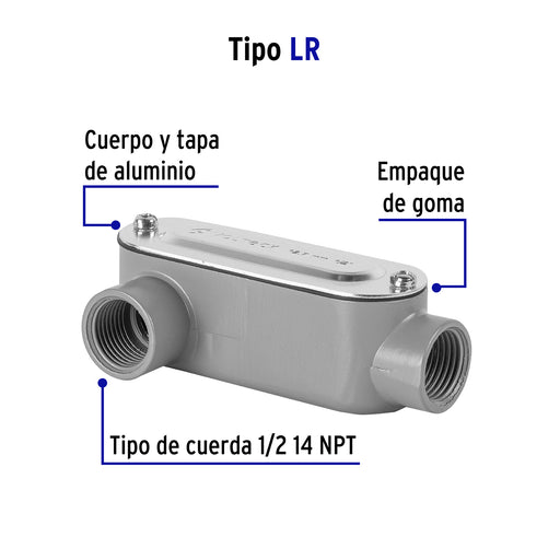 Condulet 1/2' conexión tipo LR, Volteck 46973 COLET-1/2-LR