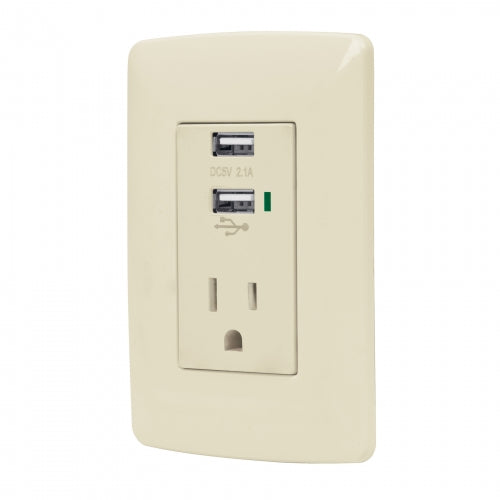 Contacto aterrizado + 2 puertos USB, marfil, línea Italiana 48064 COUSB-I