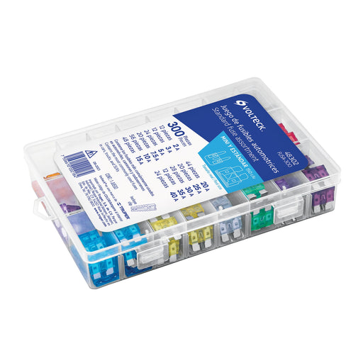 Juego de fusibles automotrices estándar y mini, 300 pz 48302 FUSA-300