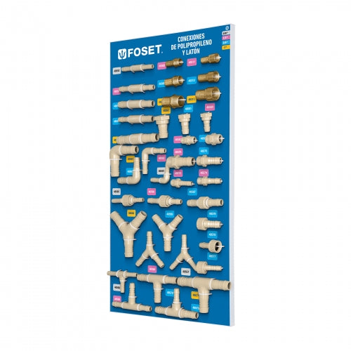 Exhibidor con conexiones para manguera de PP, Foset 55955 EX-CM-FOS