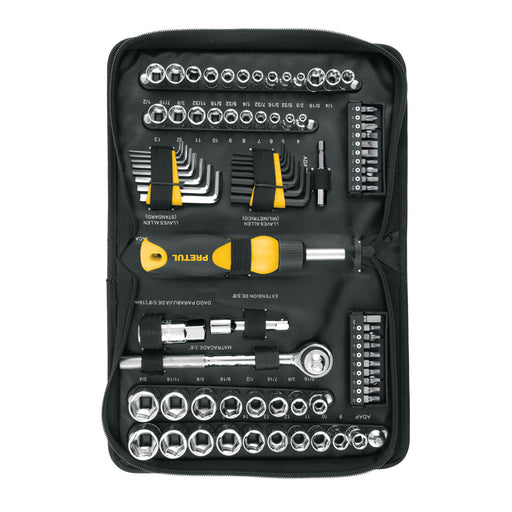 Juego de 66 herramientas 1/4' y 3/8' para mecánico, Pretul 22985 SET-70