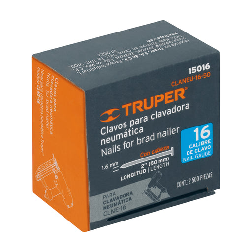 Caja con 2500 clavos calibre 16, 50 mm para CLNE-16, Truper 15016 CLANEU-16-50