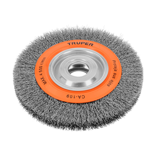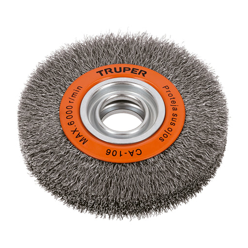 Carda alambre ondulado 6' x 1-1/8' para esmeril, Truper 11526 CA-106