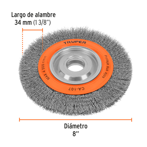 Carda alambre ondulado 8' x 7/8' para esmeril, Truper 17525 CA-108