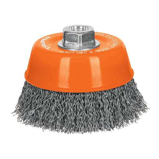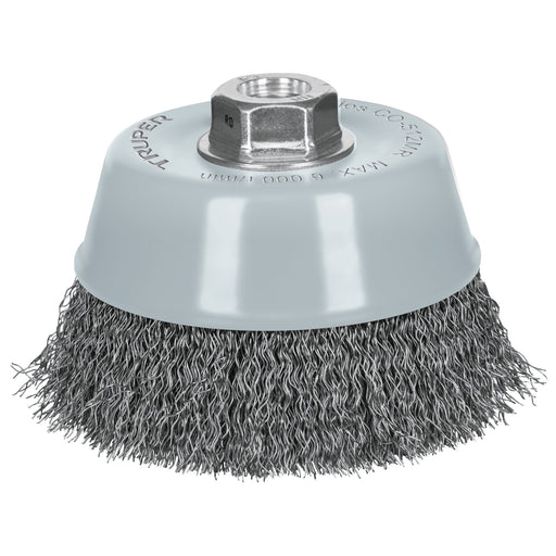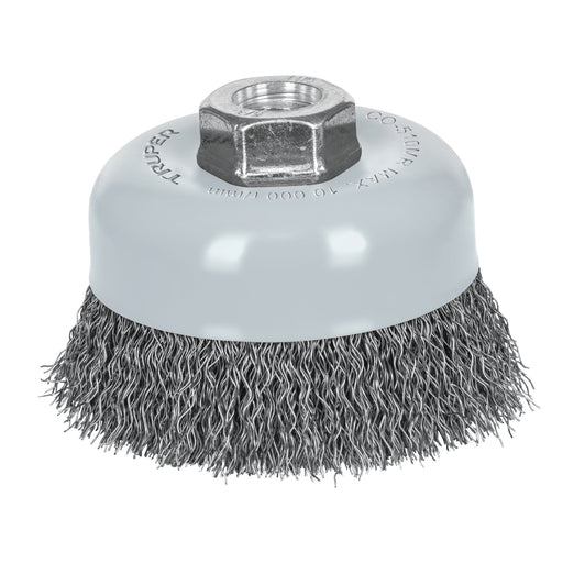 Carda copa 5' alambre ondulado grueso, eje 5/8'-11, Truper 17533 CO-512X