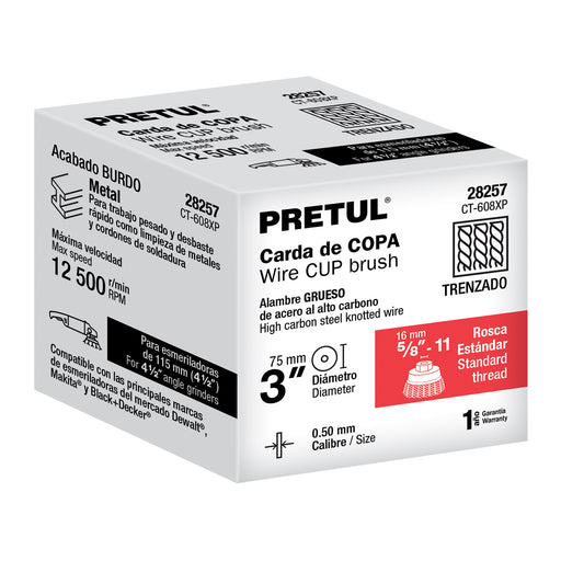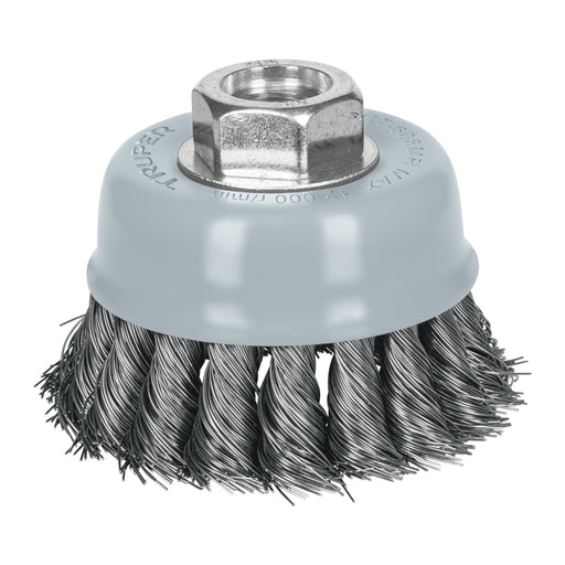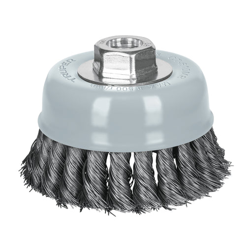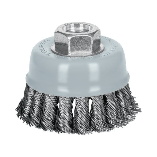Carda copa 3' alambre trenzado grueso, eje 5/8'-11, Truper 17529 CT-608X