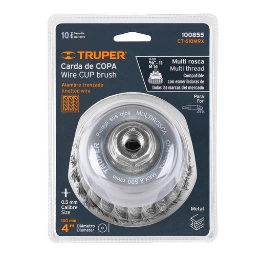 Carda copa 4' alambre trenzado fino, Multi-rosca, Truper 100852 CT-610MR