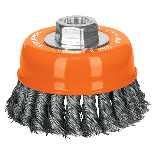 Carda copa 3' alambre trenzado grueso, eje M14, Truper 17530 CT-608MX