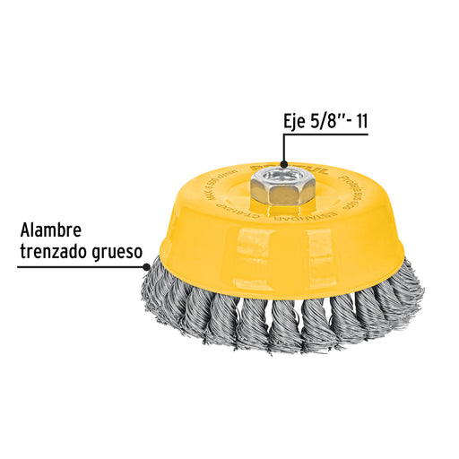 Carda copa 5' alambre trenzado fino, eje 5/8'-11, Truper 11541 CT-612