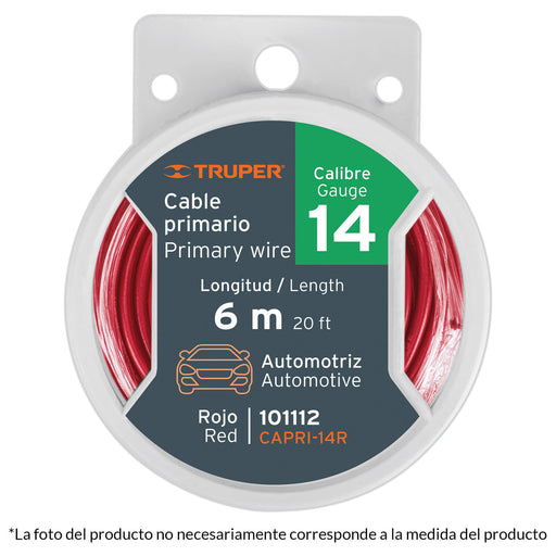 Carrete con 6 m de cable primario rojo calibre 14, Truper 101112 CAPRI-14R