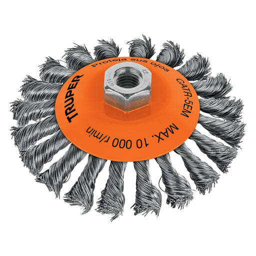 Carda tipo cónico 5' alambre trenzado, eje M14, Truper 14189 CATR-5EM