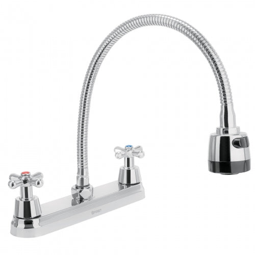 Mezcladora inox 8' p/fregadero, cuello cobra, cruceta, Aqua 45626 AQF-89