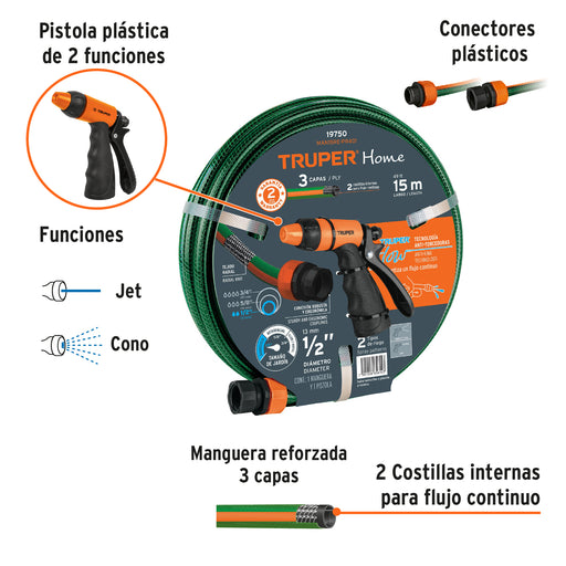Combo manguera MAN-20X1/2X y pistola de riego PR-208, Truper 10864 COMBO-200