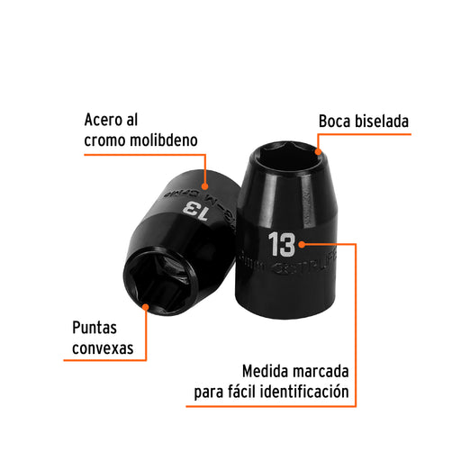 Dado cuadro 1/2' de impacto 6 puntas de 13 mm, Truper 12413 D-7413-M