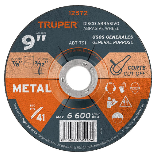 Disco de 9' para corte de metal, tipo 41, Truper 12572 ABT-791