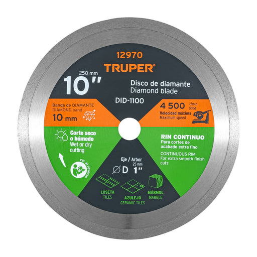 Disco de diamante de 10' x 2.2 mm rin continuo, Truper 12970 DID-1100