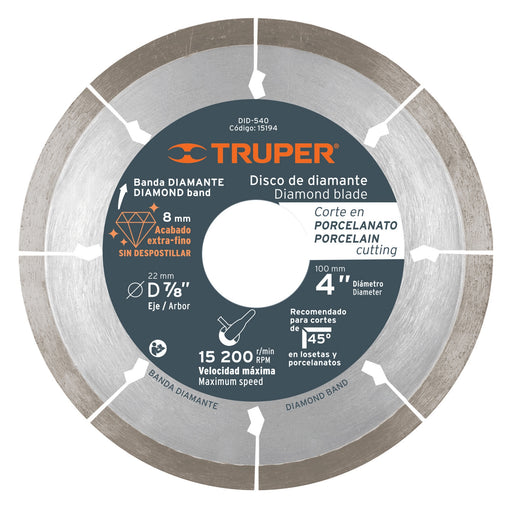 Disco de diamante de 4' x 1.3 mm corte de porcelanato 15194 DID-540