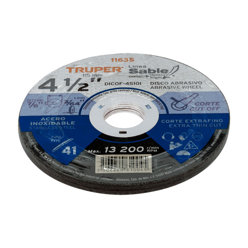 Disco Tipo 41 de 4-1/2' x 1 mm corte fino acero inox, Sable 11635 DICOF-4510I