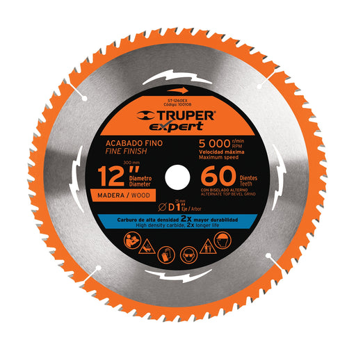 Disco sierra 12' para madera, 60 dientes centro 1', Truper 18312 ST-1260E