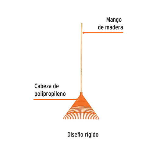 Escoba plástica para jardín, rígida, 22 dientes, mango 48' 19786 EP-22R