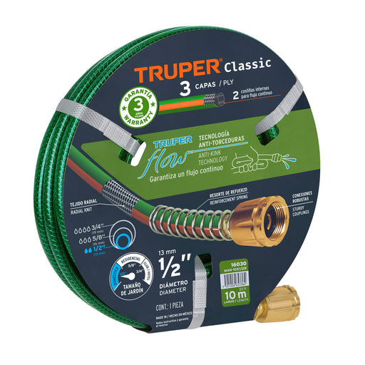 Manguera 1/2' reforzada 3 capas 10 m conexiones de metal Código: 16030