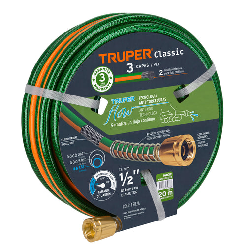 Manguera 1/2' reforzada 3 capas 20 m conexiones de metal Código: 16032