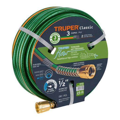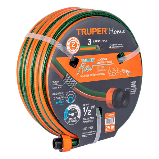 Manguera 1/2' reforzada 3 capas 25 m conexiones plásticas Código: 102546