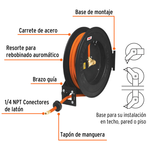 Manguera para compresor, tipo resorte, 15.2m x 1/4', Truper 19075 MAN-R-15