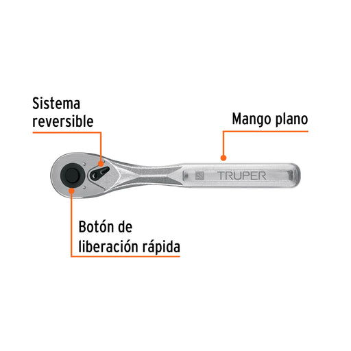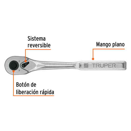 Matraca liberación rápida 72 dientes, cuadro 1/4', Truper 102369 M-1472